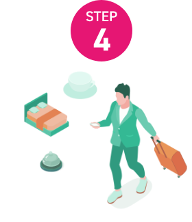 当日のチェックイン時に、「ちの割利用承諾書」を記入。カウンターで宿泊者全員の住所確認いたします。観光クーポンをお受け取りください。